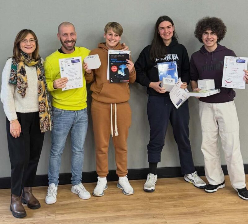 da sinistra: Anna Maria Madaio DD-SCI, prof Daniele Tassetti docente Liceo Scientifico Labriola di Roma, Milone Alfonso, Battistuzzi Tiziano, Congiu Leonardo
